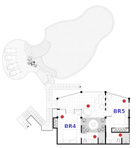 With nearly 10,500 sq. ft. of living space across six beautifully crafted levels, the villa offers endless room for everyone to spread out while still enjoying connected, social spaces. Ten beautifully appointed suites—each with private bathroom, A/C, and luxury furnishings—make it ideal for multi-family vacations, wedding groups, corporate retreats, and special celebrations. Flexible bedding options easily accommodate up to 26 guests.