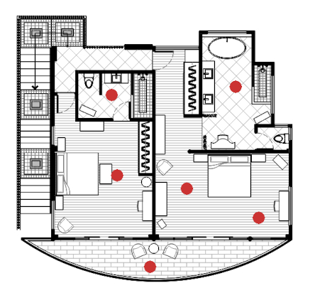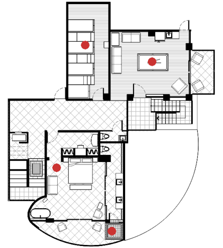 User Instructions: Each arrow or pinpoint will guide you accordingly to each space that you want o explore. Tap or click on each one and slide to the direction which you want to turn to. When looking down, press our logo to return to the main view of the house.