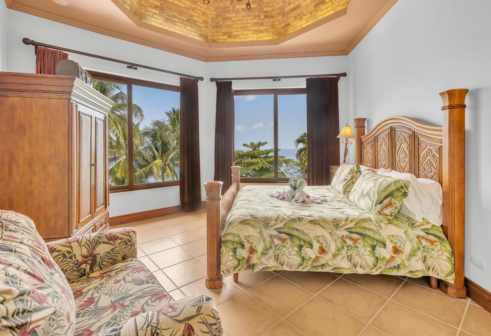 Every level of this grand home opens onto its own terrace or sun deck, where ocean breezes and sunset views fill each day with tranquility. The villa’s four-poster beds, handcrafted furniture, and locally made fabrics reflect the artistry of Costa Rican design, blending luxury with tropical charm.